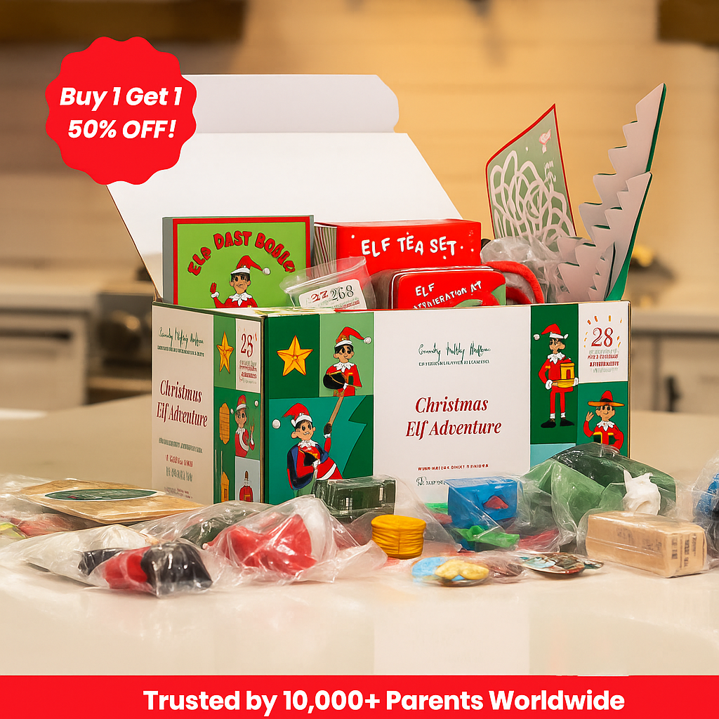 Each box comes with 24 ready-to-go elf scenes, complete with props, setup cards, and instructions — everything you need to create daily Christmas magic with zero stress.